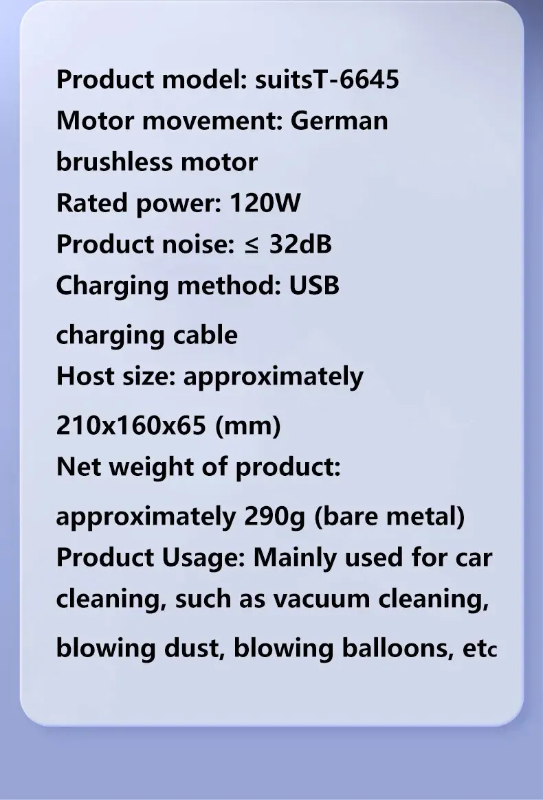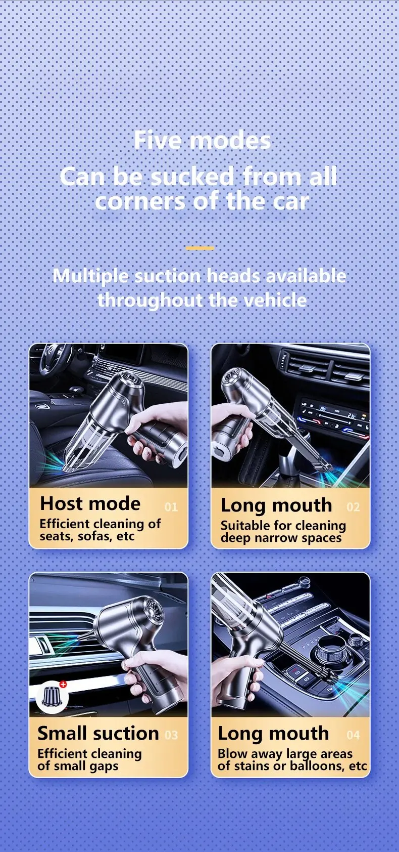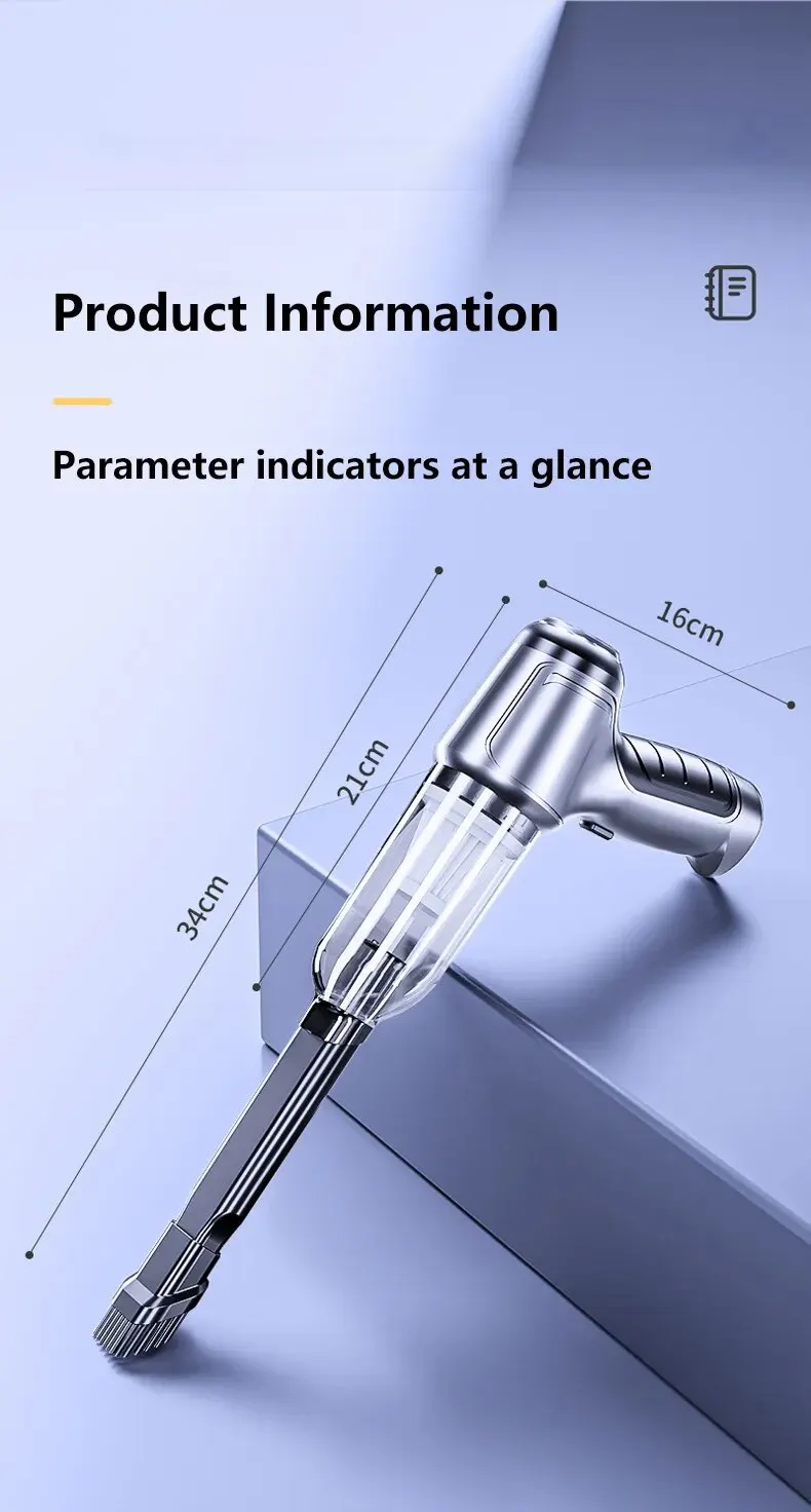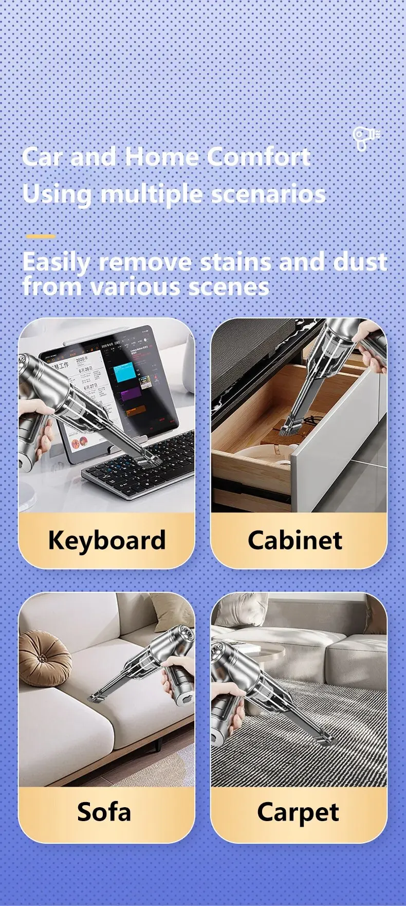 • High Vacuum Power : With a vacuum power of 2023 95000Pa, this cleaner can effectively remove dust and dirt from hard-to-reach areas in your car, home, or desktop.
